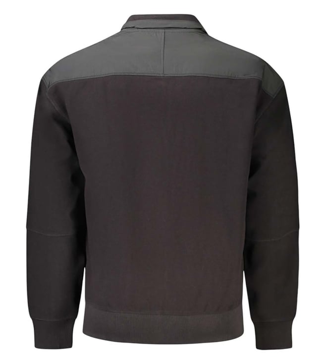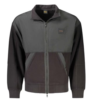 Adorn the modern look with this black long sleeves logo jacket from Hugo Boss crafted in cotton featuring long sleeves, logo detailed, two central pockets, zip closure, ribbed cuffs.