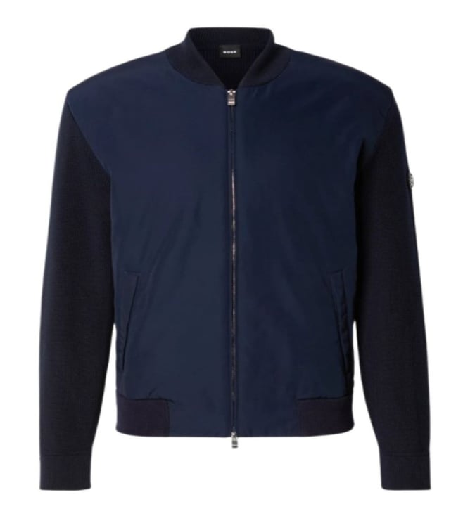 Blue full-zip bomber jacket