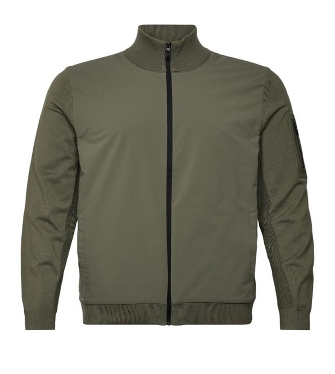 Olive Green Full-Zip Knit Jacket