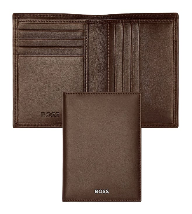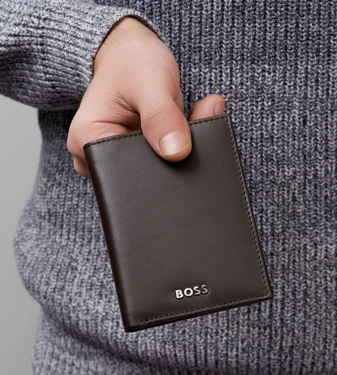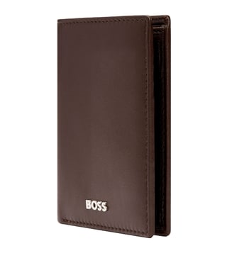 The Boss Classic Smooth line is Boss ultimate minimalist, timeless small leather goods offering, characterized by carefully chosen leathers and understated aesthetics. All pieces are masterfully crafted and signed with crisp chrome Brand plates, along with monogram linings. The designs are available in black and brown. This Compact card holder includes : 2 currency compartments 8 card slots 2 side compartments
