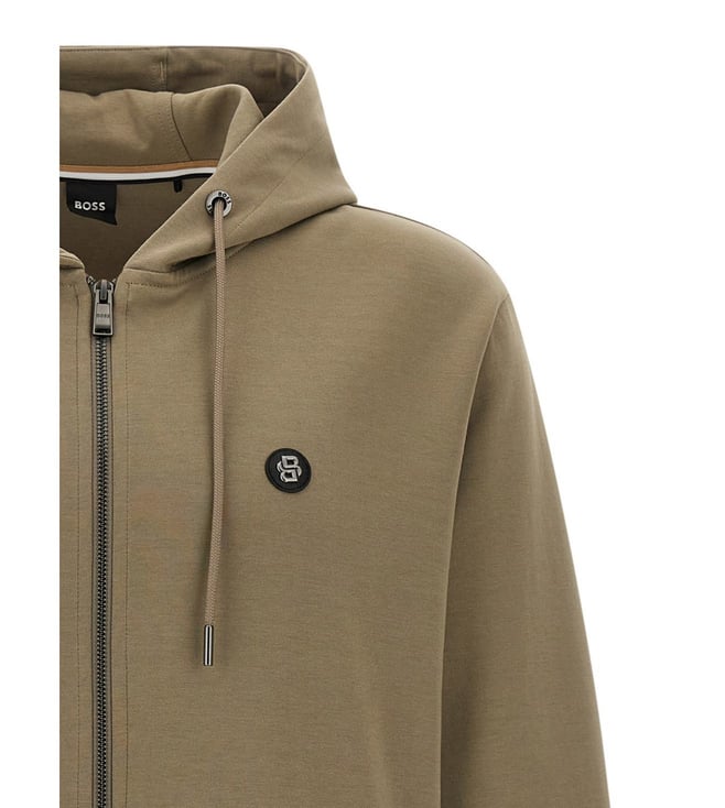 C-spence 01 cotton blend hoodie with leather patch with front metal logo, zip closure, pockets, long cuffed sleeves, true to size fit.
