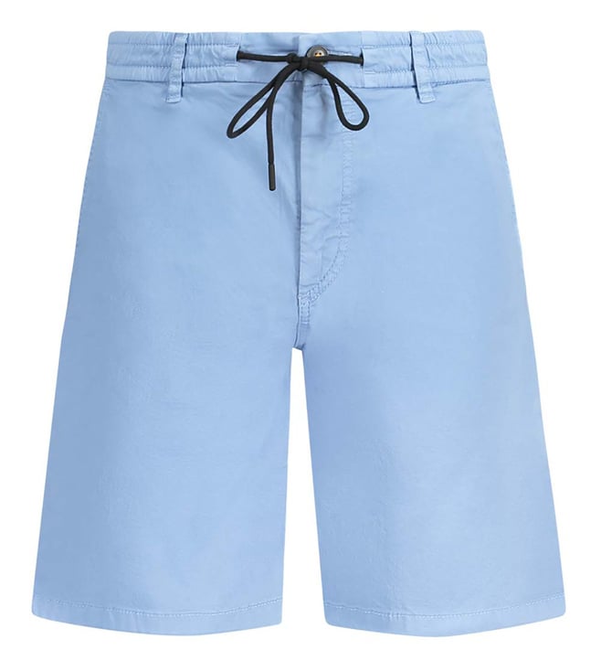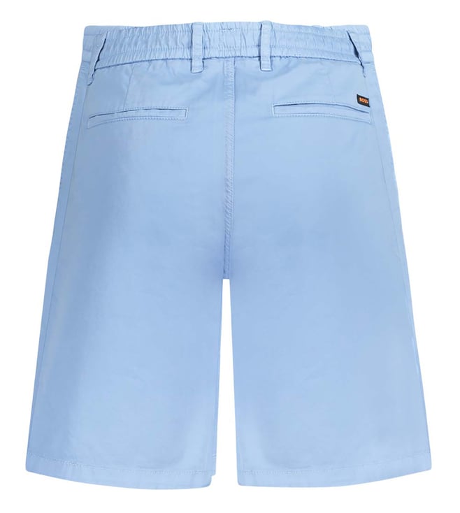 Adorn the modern look with this light blue chino shorts from Hugo Boss crafted in cotton/elastane featuring tapered fit, multiple pockets, button closure, belt loops, zip fly, drawstring, logo detailed. Products purchased from Darveys are supported exclusively by the warranty/exchange policies of Darveys and its partner boutiques. Brand owners and their channel partners are not responsible for exchange/warranty services for items purchased through Darveys.