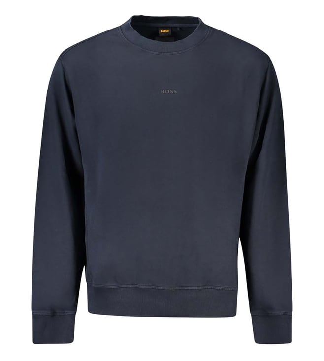Hugo Boss Navy Blue Crewneck Logo Print Regular Fit Sweatshirt