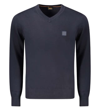 Adorn the modern look with this navy blue v-neck logo patch hoodie from Hugo Boss crafted in cotton/cashmere featuring v-neck, long sleeves, logo patch, ribbed cuffs and hem, pullover.