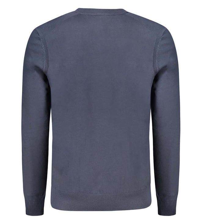 Adorn the modern look with this navy blue v-neck sweatshirt from Hugo Boss crafted in cotton/mixed materials featuring long sleeves, v-neck, logo detailed, pullover.