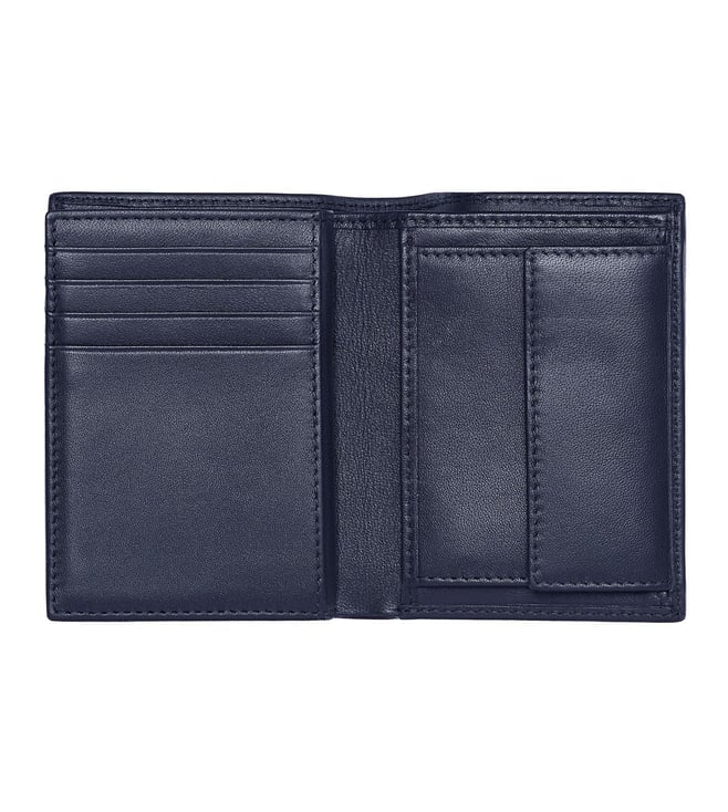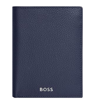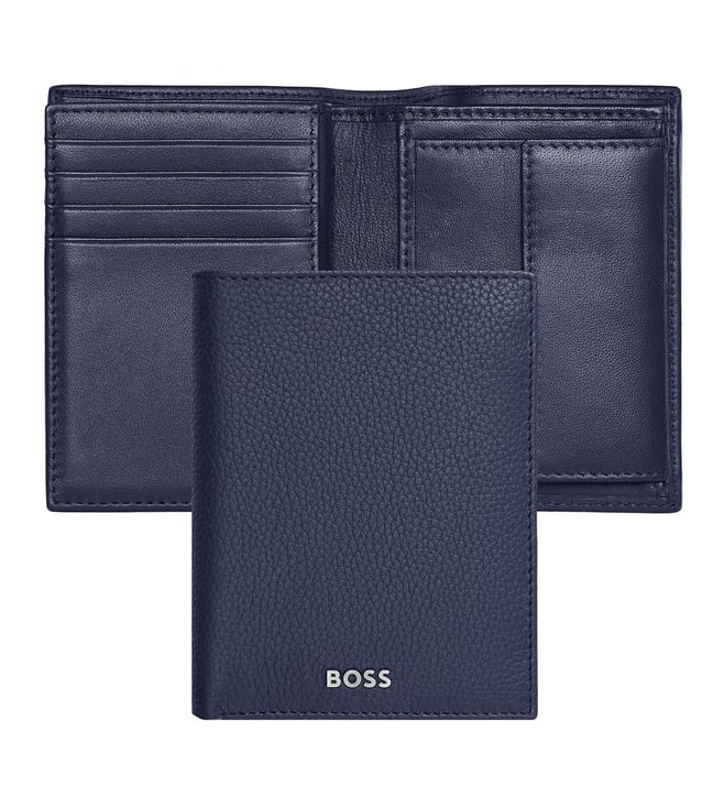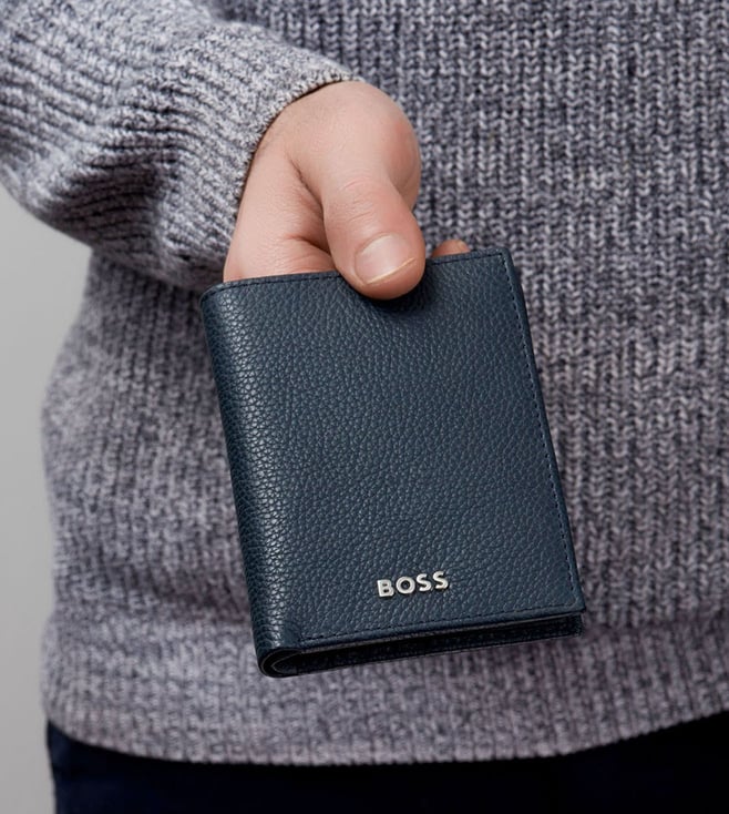 This card holder with flap & money pouch is made of catefully chosen, top grain Navy grained leather. it is signed with a luxurious chrome BOSS signature plate, and features monogrammed inside lining. It features : 2 currency compartments 12 card slots 5 side compartments 1 coin slot In adhesion with the BOSS brand DNA, it is simple, functional, elegant & minimal.