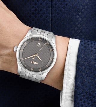 The Hugo Boss Principle Quartz Men 41 mm model 1514116 is a refined and versatile timepiece crafted for the modern man who values style, precision and everyday wearability. With its classic 41 mm stainless steel case, elegant grey dial and polished bracelet the watch presents a perfect balance of business-dress sophistication and casual versatility.