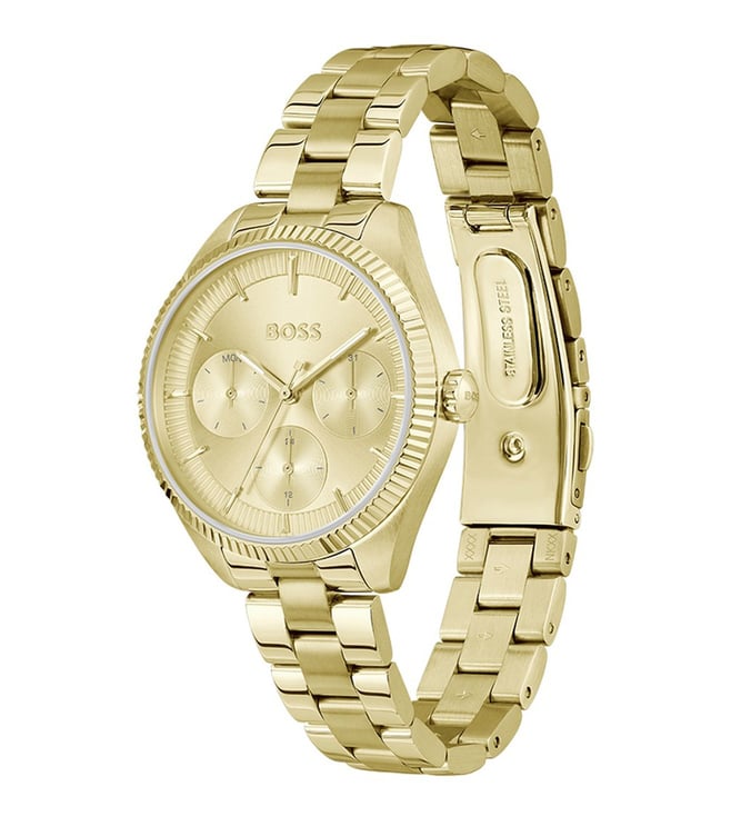 The Hugo Boss SAGE SPORT Quartz watch for women features a luxurious gold round dial encased in durable stainless steel, combining elegant design with lasting strength. Its multicolor band adds a versatile and stylish touch, perfect for both casual and formal occasions. Powered by precise quartz movement, this timepiece ensures reliable accuracy and low maintenance. An excellent choice for those seeking a refined accessory that blends sporty sophistication with dependable performance.
