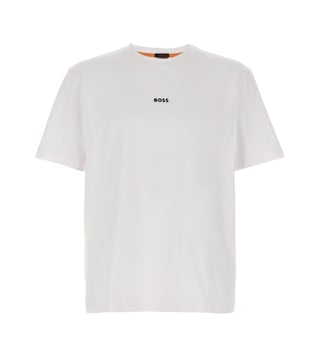 Elevate your style with the Hugo Boss White Relaxed Fit t-shirt. Tchup' stretch cotton t-shirt with front embossed logo print, crew neck, short sleeves. Relaxed fit.