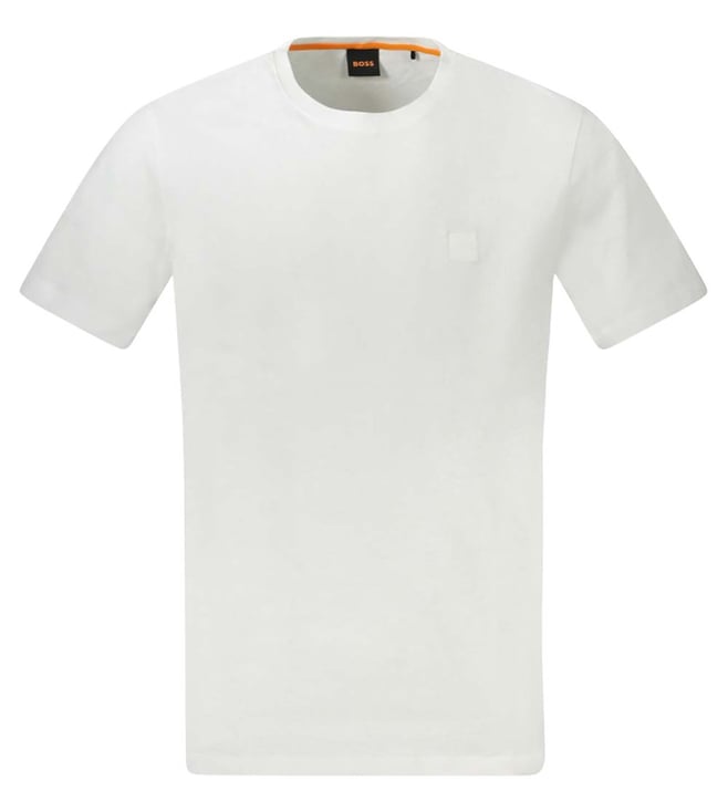 Hugo Boss White Crewneck Logo Patch Regular Fit T-Shirt