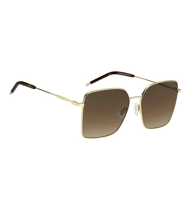 Elevate your eyewear game and make a lasting impression wherever you go with our meticulously crafted Hugo Brown Lens Gold Square Full Rim Sunglass for Women with 100% UV Protection-205054J5G59HA.Made for those who appreciate quality and sophistication, these sunglasses are more than just an accessory ¿ they're a statement of individuality and taste.