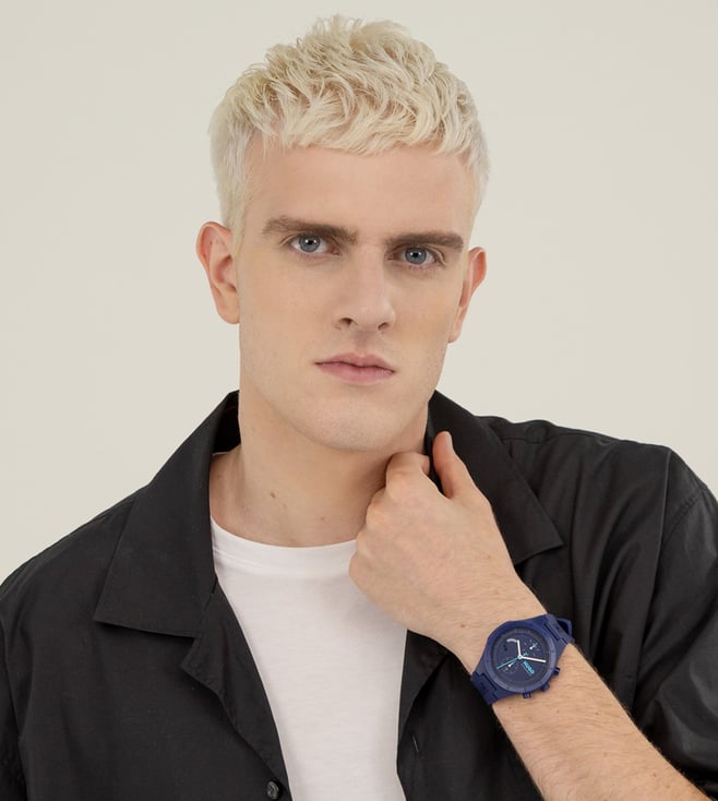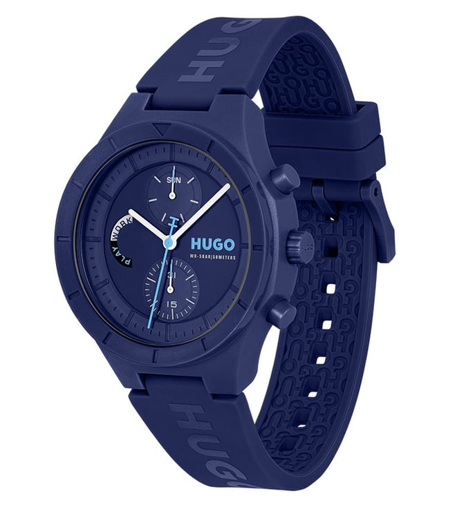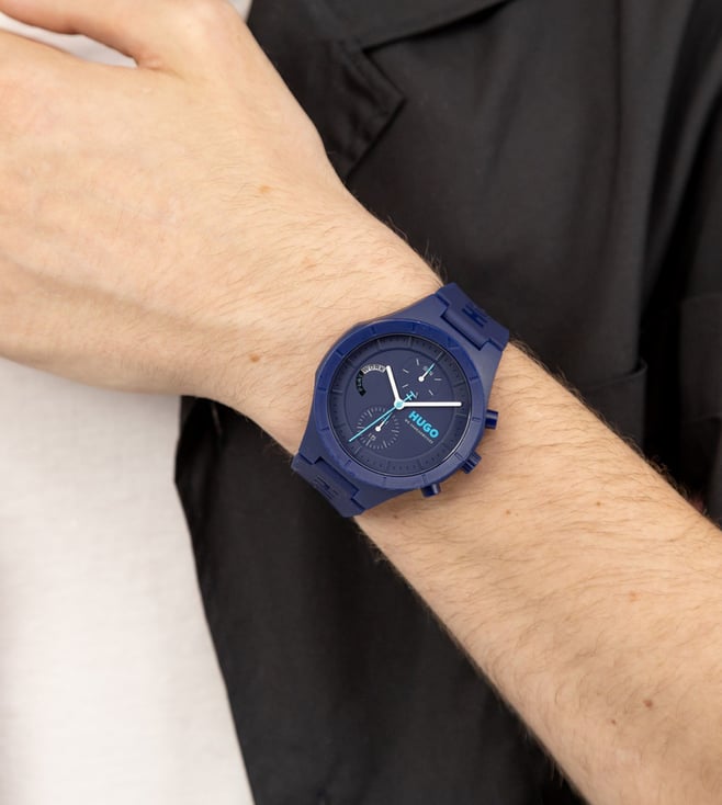 Designed to suit the preference of urban men, this analog watch from the collection by HUGO is sure to make a style statement. Secured by a mineral glass, the blue round dial is protected in a case. It exhibits crown for time adjustment. The silicon strap flaunts a blue hue that accentuates the look of the watch. Moreover, it is fitted with a pin buckle clasp to ensure a secure fit on the wrist.