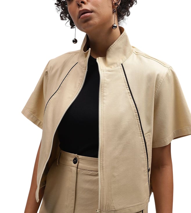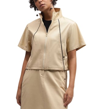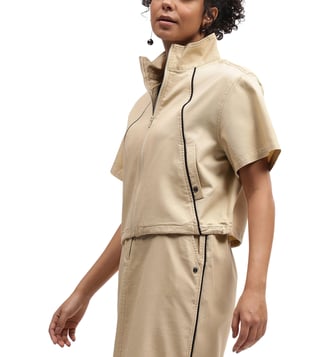 Discover effortless style with this top, featuring a relaxed silhouette in a timeless pattern. Crafted from breathable fabric, it boasts chic sleeves and a charming neck. It is complete with a convenient zippered closure for a seamless blend of comfort and chic.