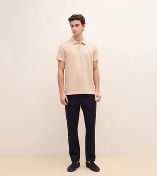 Elevate your casual wardrobe with this beige polo t-shirt, a perfect blend of style and comfort. Crafted in a textured pattern, it offers a sophisticated touch to the classic polo design. The regular fit ensures a flattering silhouette, while the short sleeves and polo collar add timeless appeal. Made from a premium blend of 96% polyester and 4% spandex, it provides a soft, flexible feel for all-day wear. The convenient closure enhances its sleek look, making it an essential piece for any modern man.