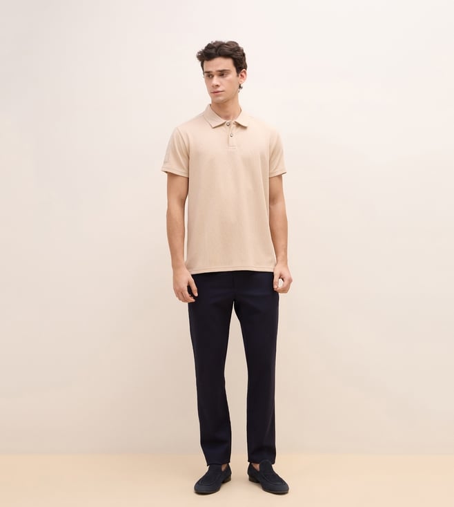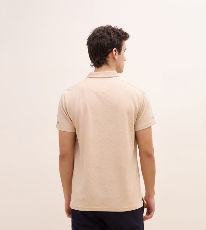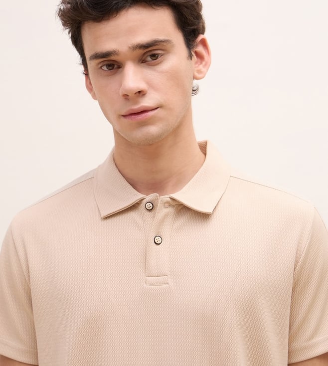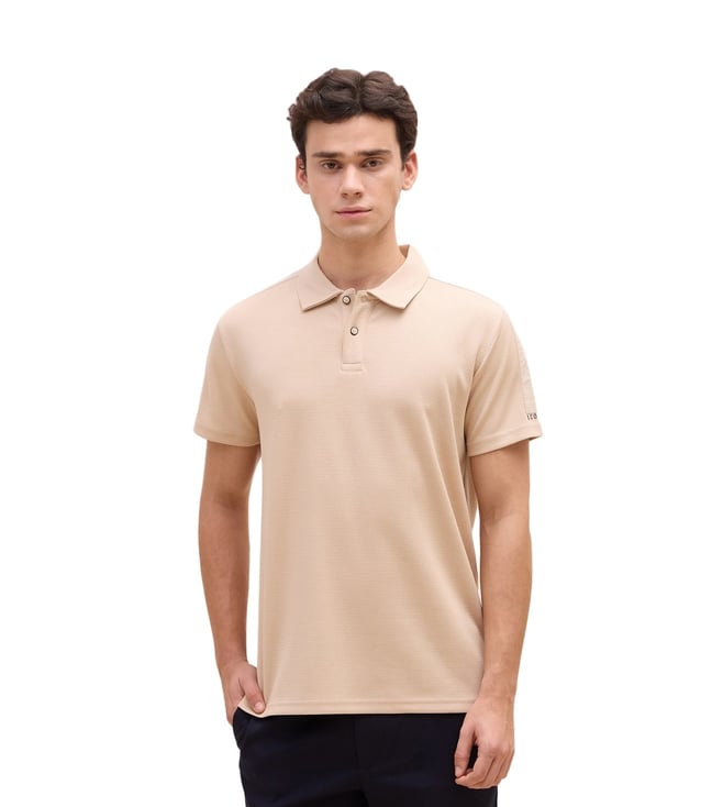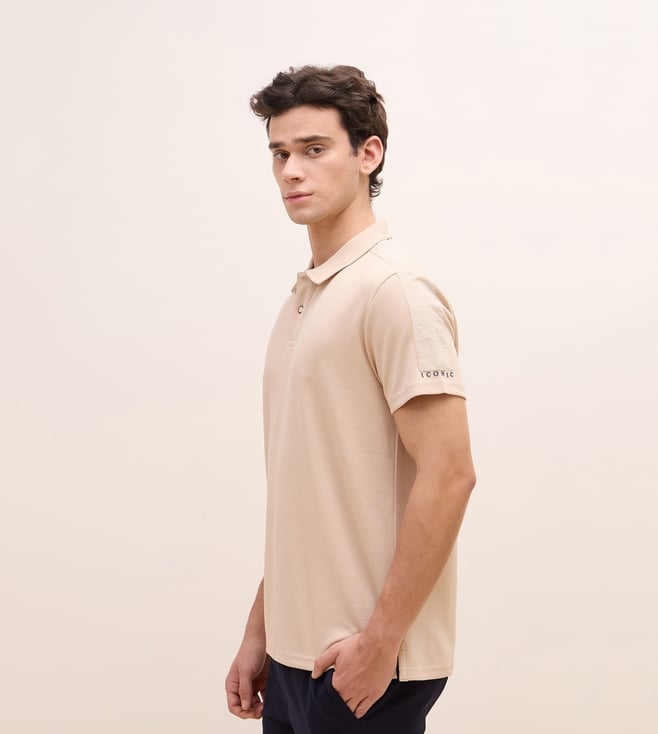 Iconic Beige Regular fit Textured Polo T-Shirt