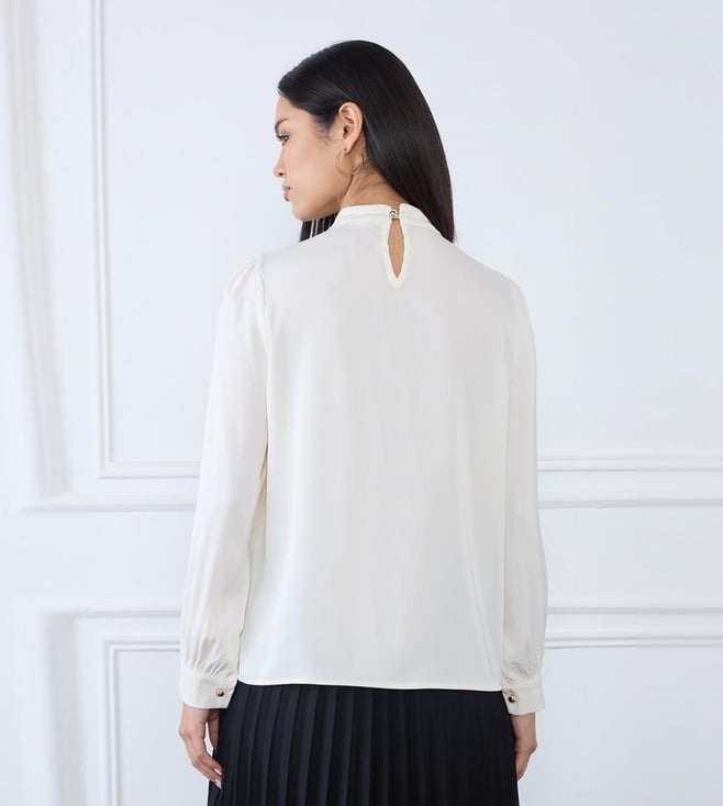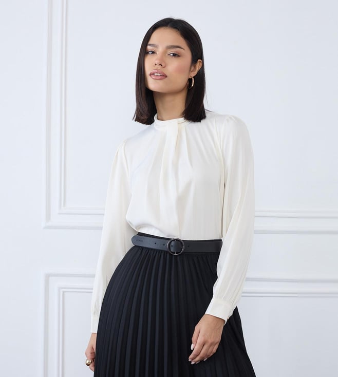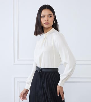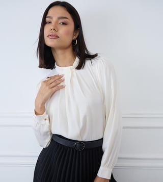 Elevate your wardrobe with this elegant satin top in a timeless beige hue. Designed for a regular fit, this top features a solid pattern that effortlessly complements any ensemble. The full sleeves and round neck add a touch of sophistication, making it perfect for both work and casual outings. Crafted from high-quality polyester fabric, it offers a smooth and comfortable feel against the skin.