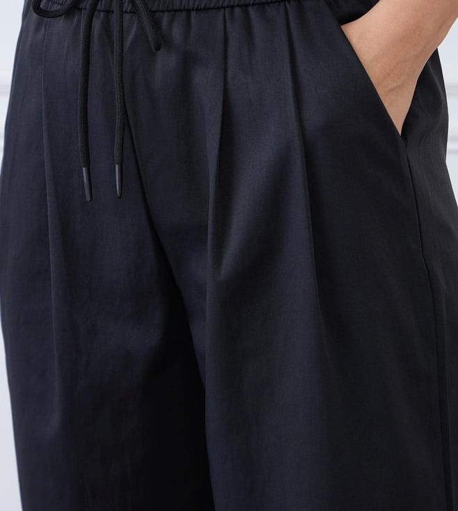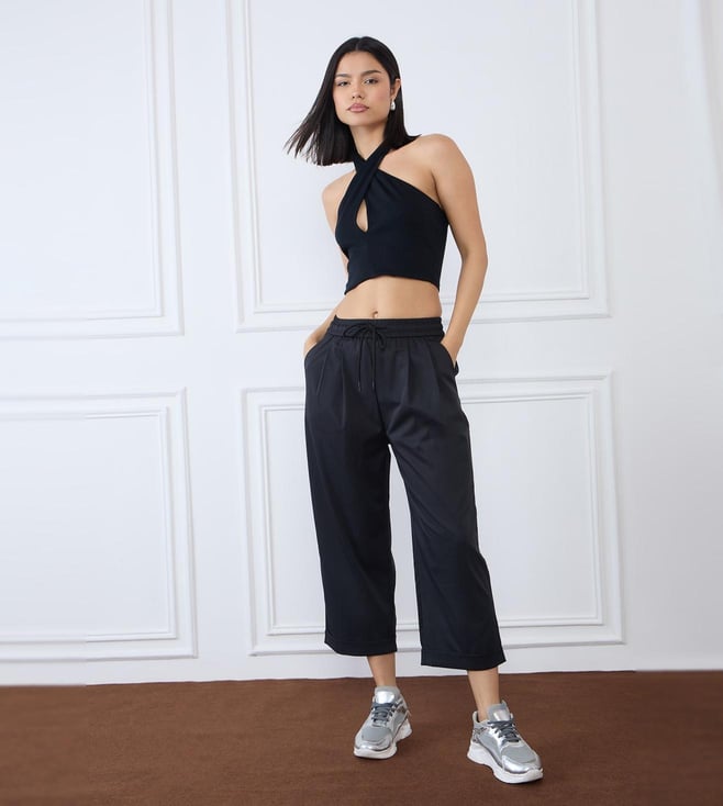 Discover the perfect blend of style and comfort with our black pleats pants, designed for the modern woman. Featuring a chic balloon fit, these pants offer a unique silhouette that flatters every body type. The high-rise design ensures a sleek look, while the elasticated waistband with a drawstring closure provides a customizable fit. Crafted from durable polyester fabric, these pants are both lightweight and breathable, making them ideal for any occasion. The solid pattern adds a touch of elegance, perfect for dressing up or down.