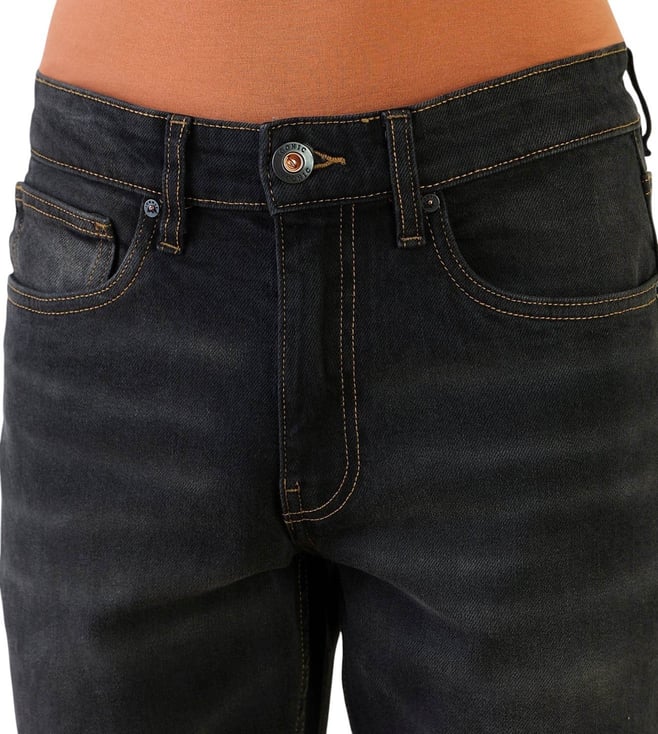 Discover the perfect blend of style and comfort with our Shank Button Washed Jeans in Black. Designed for men who appreciate quality, these jeans feature a classic boot cut and a solid pattern that complements any wardrobe. The high-rise fit offers a flattering silhouette, while the shank button closure adds a touch of sophistication. Made from premium cotton fabric, these jeans are not only durable but also stretchable, ensuring ease of movement throughout your day. Elevate your everyday look with these versatile jeans.