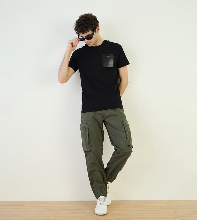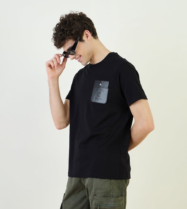 Iconic Black Pure Cotton Regular Solid T-Shirt