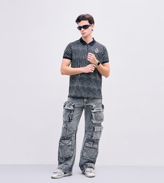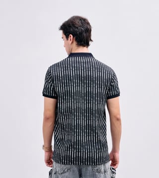 Elevate your casual wardrobe with this sleek black polo t-shirt, featuring a timeless stripes pattern that exudes sophistication. Designed for a regular fit, it offers comfort and style in equal measure. The short sleeves and classic polo collar add a touch of elegance, making it perfect for any occasion. Crafted from a premium blend of 98% polyester and 2% spandex, this shirt ensures a soft, flexible feel and a polished look. Ideal for the modern man, it seamlessly combines versatility and contemporary flair.