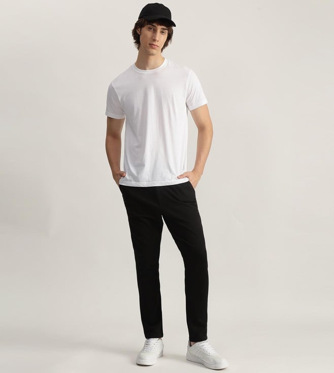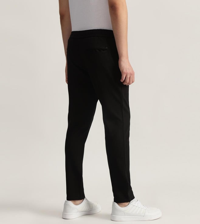 Discover the perfect blend of comfort and style with our black trackpants for men. Designed with a regular fit, these trackpants offer a sleek silhouette while ensuring ease of movement. The solid pattern adds a touch of sophistication, making them versatile for any casual occasion. Featuring a mid-rise waist and elastic closure, they provide a secure and comfortable fit. Crafted from pure cotton fabric, these trackpants are breathable and soft against the skin, ideal for all-day wear. Elevate your wardrobe with this essential piece.