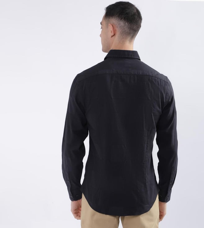 Iconic Black Woven Design Slim Fit Shirt