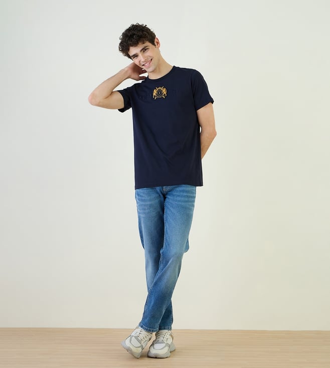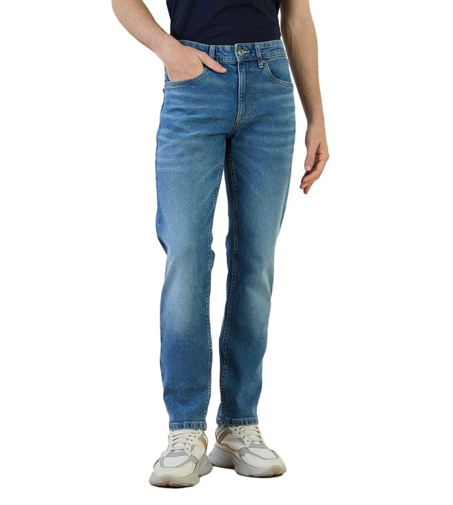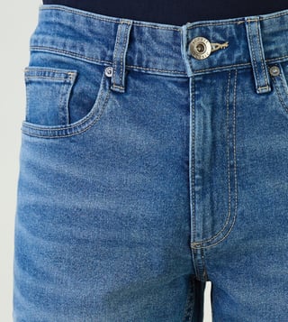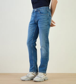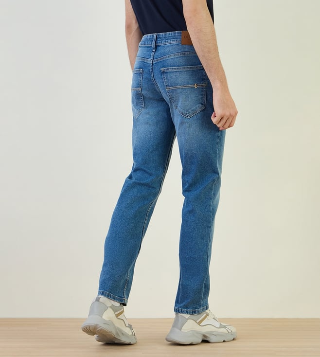 Iconic Blue Cotton Blend Slim Fit Solid Jeans