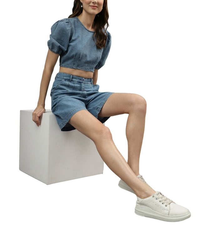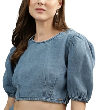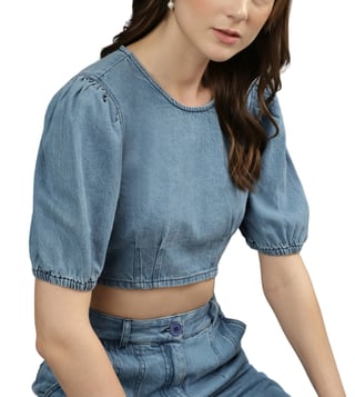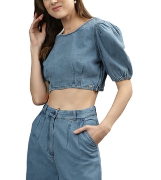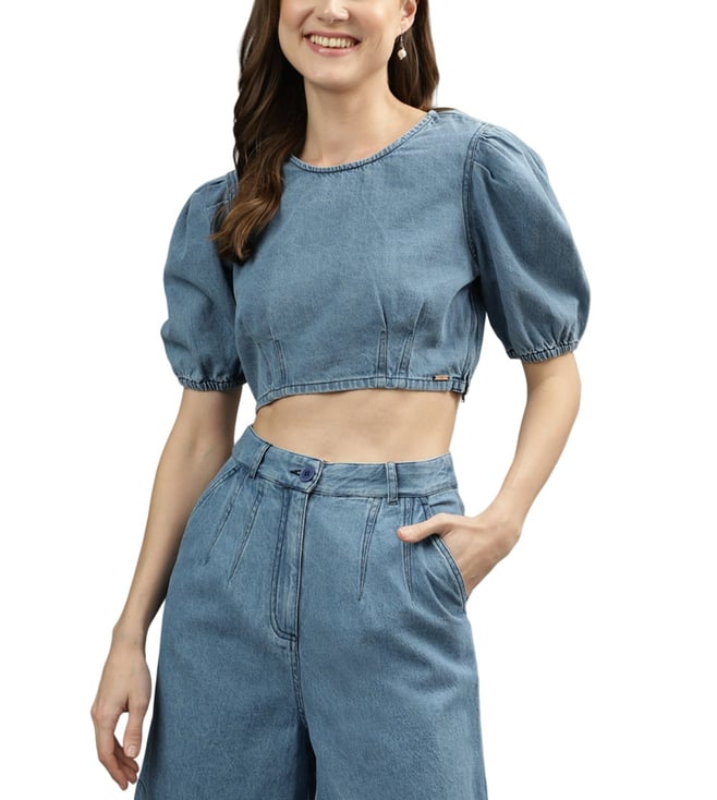 Iconic Blue Regular Fit Crop Top