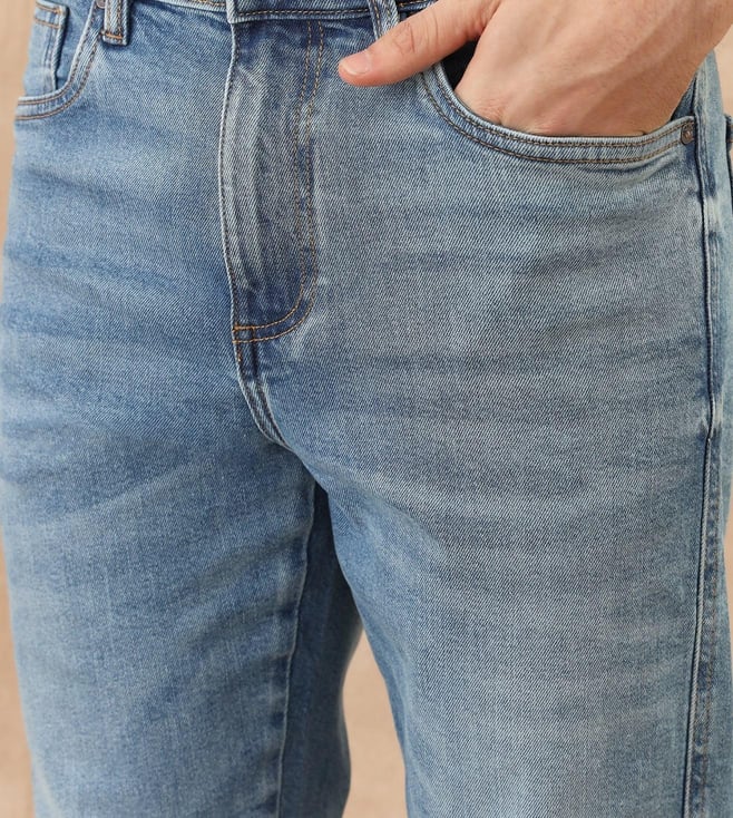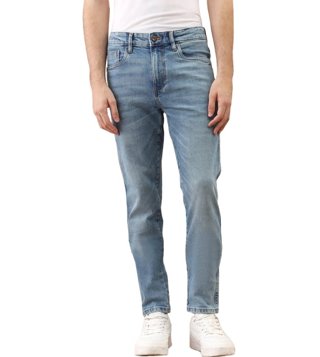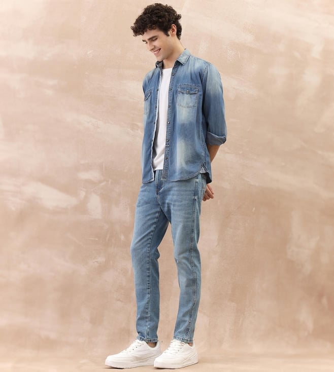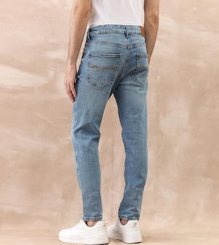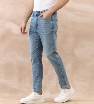 Discover the perfect blend of style and comfort with our blue slim tapered jeans for men. Crafted from a premium cotton blend fabric, these jeans offer a soft feel and durable wear. The mid-rise design ensures a comfortable fit, while the solid pattern adds a touch of classic elegance. Featuring a convenient button closure, these jeans are versatile enough for both casual outings and more polished occasions. Pair them with your favourite shirt or tee for a look that's effortlessly stylish and modern.