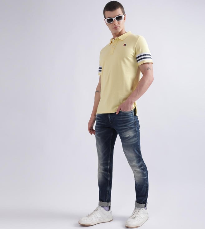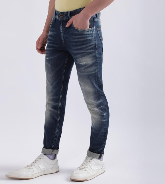 Discover the perfect blend of style and comfort with our blue slim tapered fit jeans for men. Crafted from a premium cotton blend fabric, these jeans offer a soft feel and durable wear. The mid-rise design ensures a comfortable fit, while the washed pattern adds a touch of modern flair. Featuring a classic button and zip closure, these jeans are versatile enough for any occasion. Whether you're dressing up for a night out or keeping it casual, these jeans provide a sleek silhouette that complements any look.