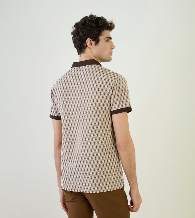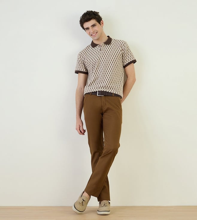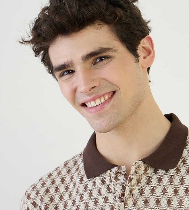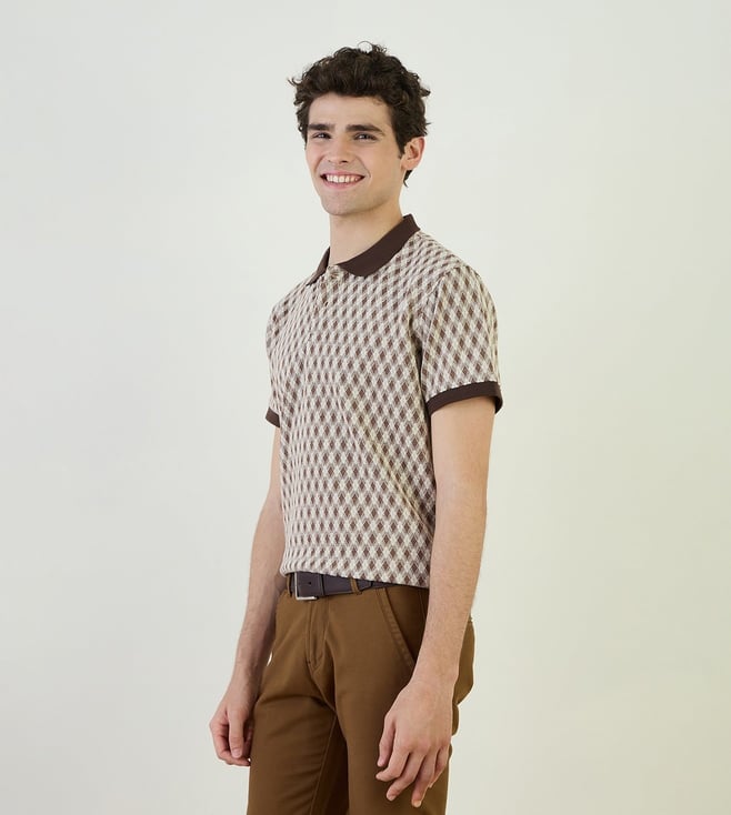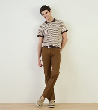 Discover the perfect blend of style and comfort with our men's brown polo t-shirt. Featuring a regular fit and eye-catching geometric pattern, this short-sleeve shirt is designed for the modern man. The classic polo collar and button closure add a touch of sophistication, while the stretchable polyester fabric ensures ease of movement and all-day comfort. Ideal for casual outings or a relaxed day at the office, this versatile polo t-shirt effortlessly elevates your wardrobe. Experience the perfect balance of fashion and functionality today.