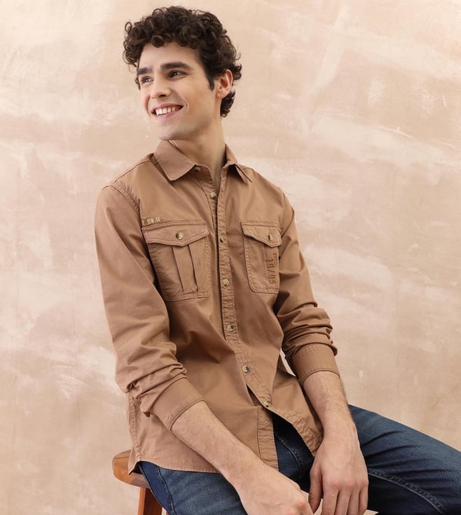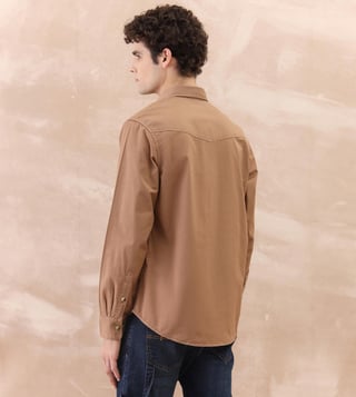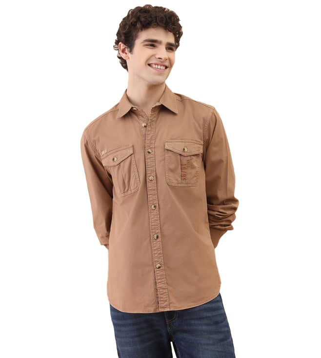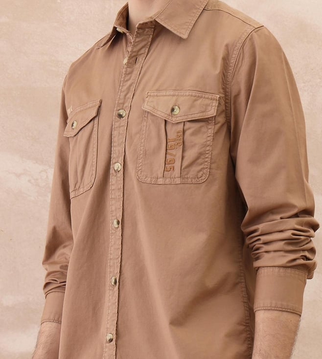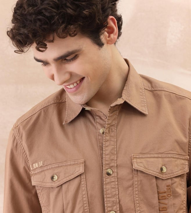Elevate your wardrobe with this classic brown shirt, featuring a regular fit and solid pattern. Crafted from a comfortable cotton blend, it offers full sleeves and a spread collar for a timeless look. The button closure adds a touch of sophistication, making it perfect for any occasion. Ideal for modern men.