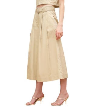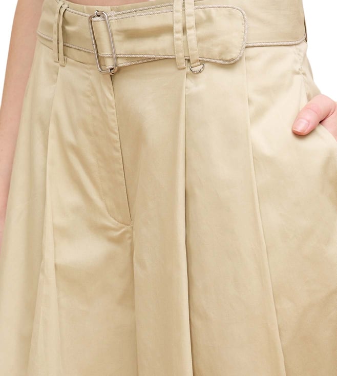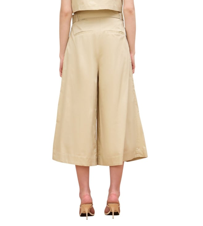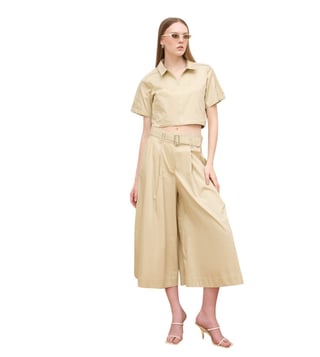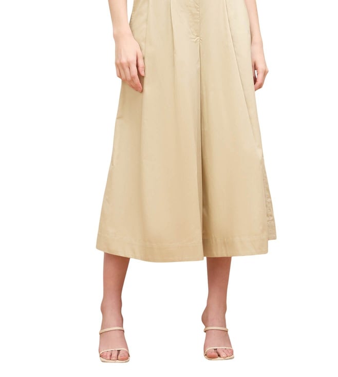 Discover the perfect blend of style and comfort with our cream-colored culottes pant, designed for the modern woman. Crafted from pure cotton, these pants offer a soft touch and breathable wear, ideal for any season. The solid pattern adds a classic touch, while the mid-rise fit ensures a flattering silhouette. Featuring a convenient hook and belted closure, these culottes provide a secure fit with an adjustable waist. The flared volume design adds a chic flair to your ensemble, making it versatile for both casual outings and professional settings. Elevate your wardrobe with this timeless