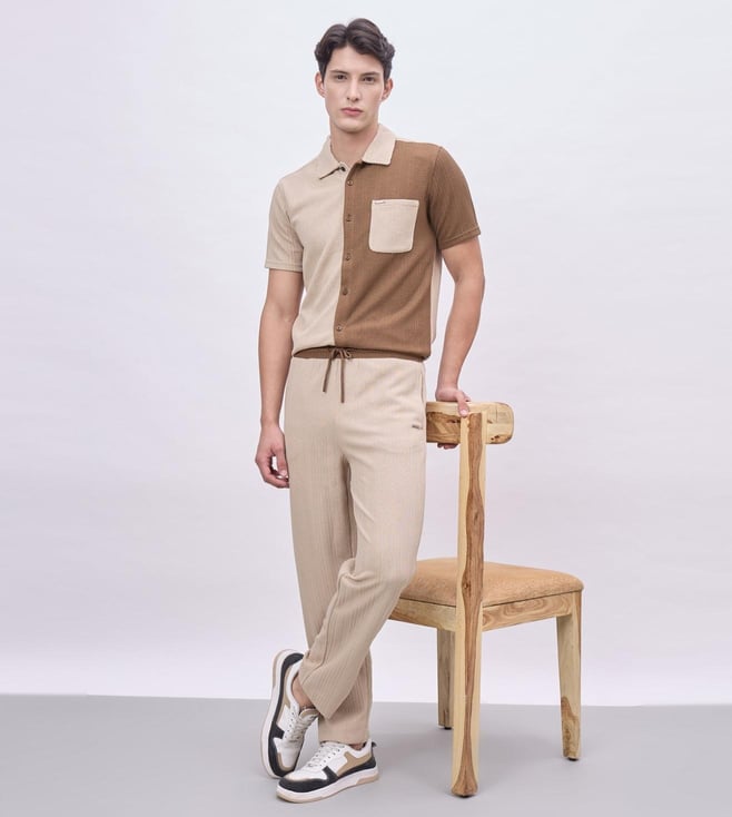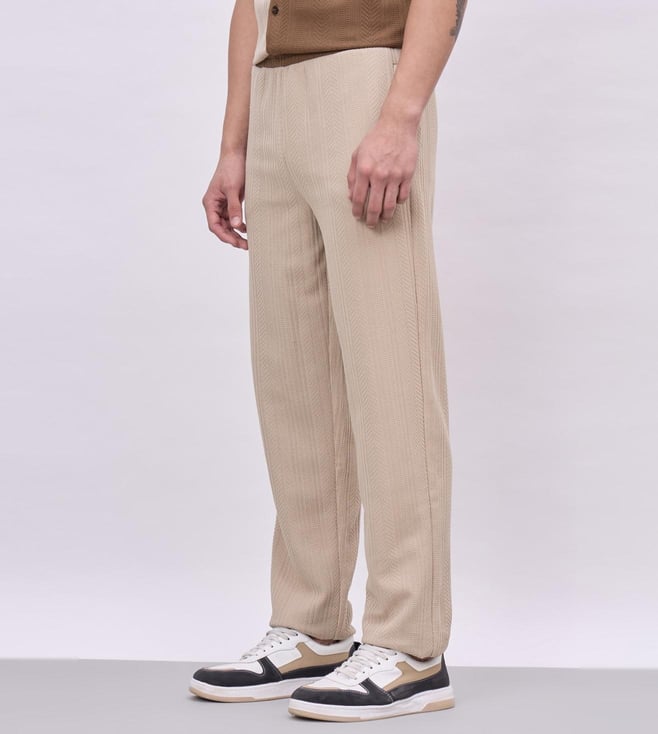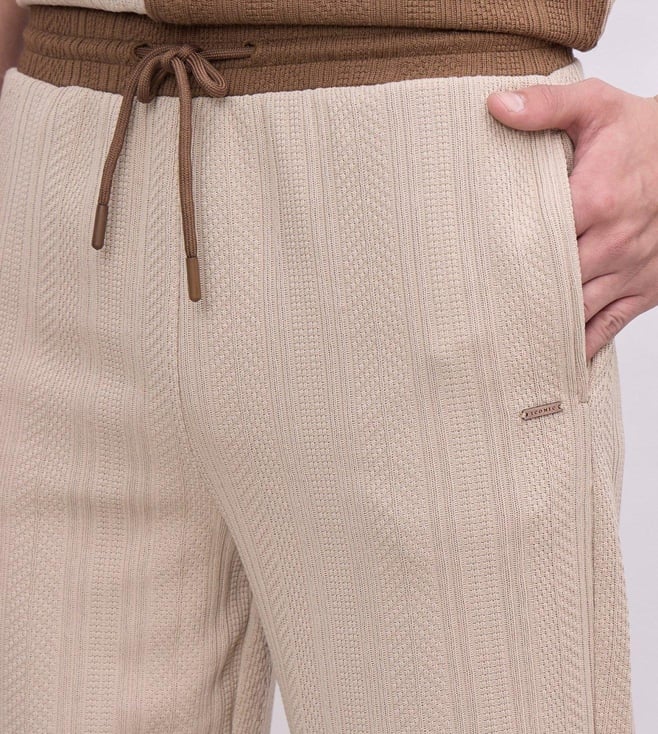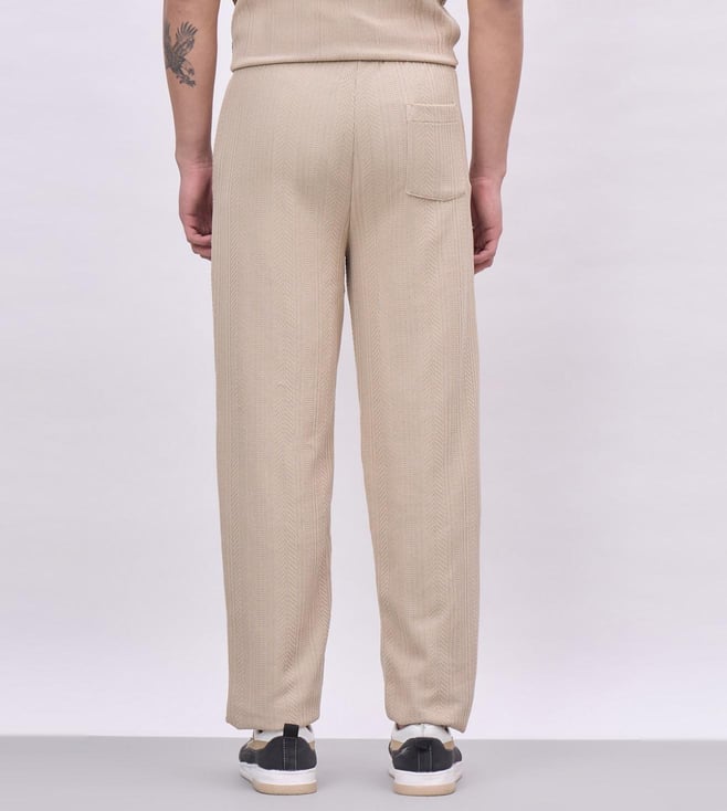 Iconic Fashion Beige Regular Fit Textured Joggers