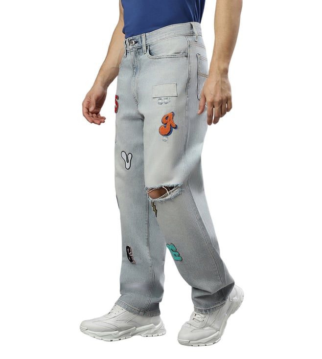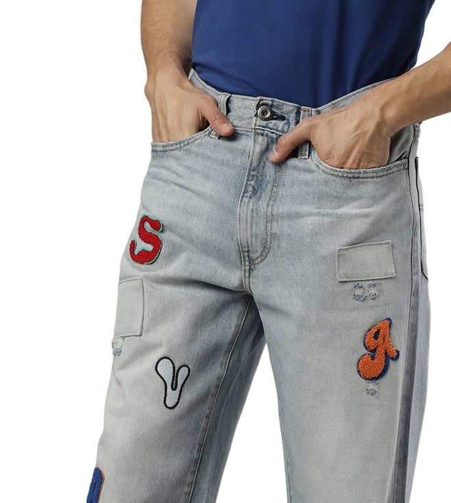 Experience timeless style with these stylish jeans, a perfect fusion of retro charm and modern style. These jeans feature a washed pattern that adds depth to the refreshing ice-blue color. The zipped and shank buttoned closure ensures easy wear, while the flattering design offers a unique silhouette. Step out with confidence, embracing a versatile piece that effortlessly combines comfort and a statement-making look, creating a lasting impression wherever you go.
