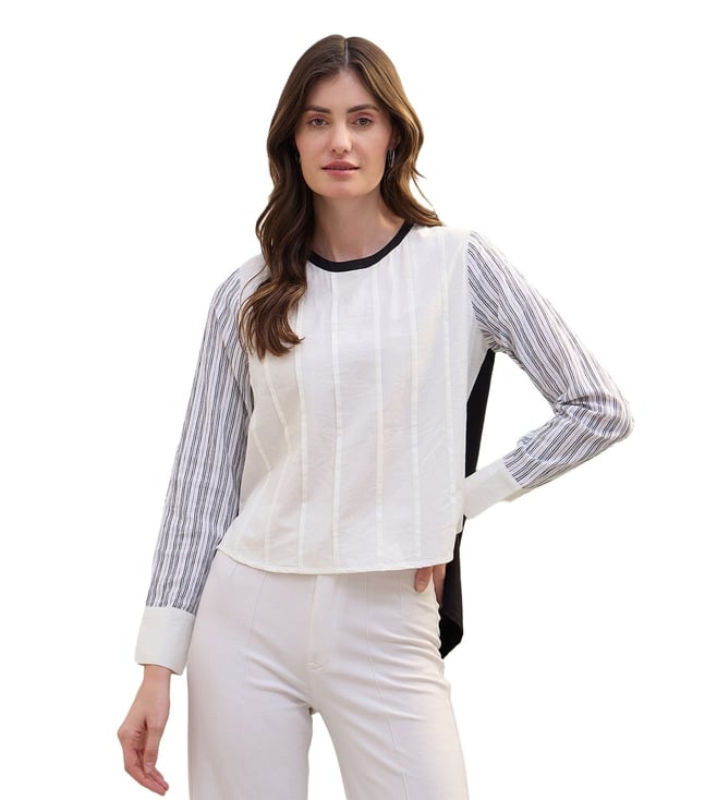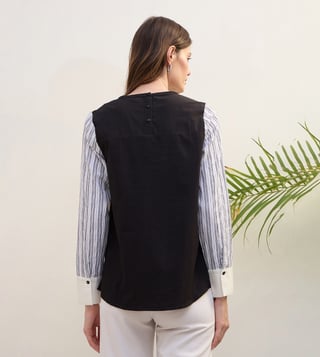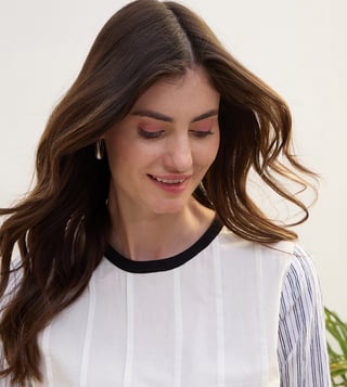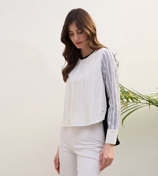 This vibrant top is a kaleidoscope of colors, featuring a playful stripe pattern that dances across the fabric. Crafted from 100% cotton, it offers a soft, breathable feel, ensuring comfort throughout the day. The regular fit gracefully drapes over the body, while the long sleeves provide a touch of elegance and warmth. The round neck adds a classic touch, making it versatile for any occasion. Perfect for the modern woman, this top is a lively addition to any wardrobe, effortlessly blending style and comfort.