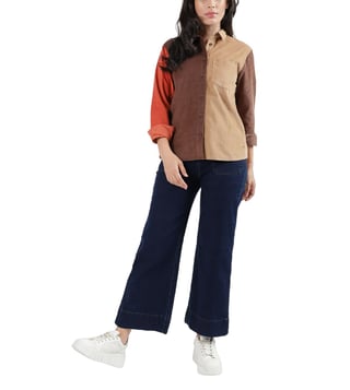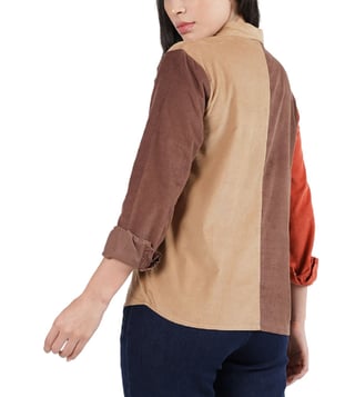 Experience comfort and style with this multi-colored shirt. This shirt, featuring chic sleeves and a trendy color-blocked pattern, is a versatile addition to your wardrobe. Perfect for any occasion, it promises to keep you looking sharp and stylish.