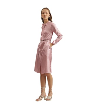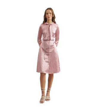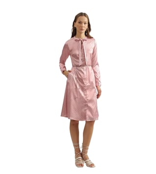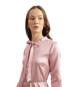 Iconic Pink Tie-Up Printed Regular Fit Shirt Dress