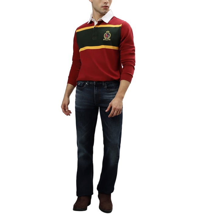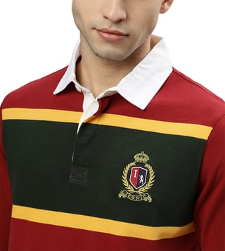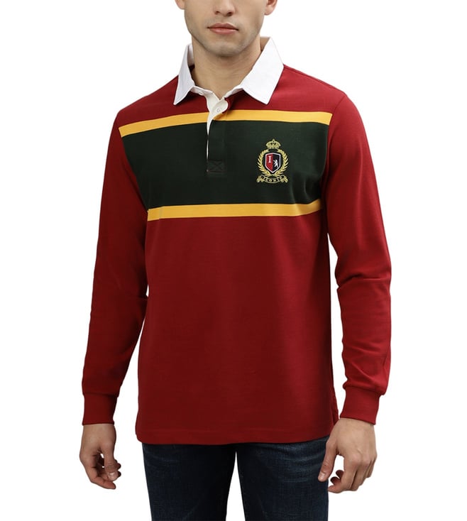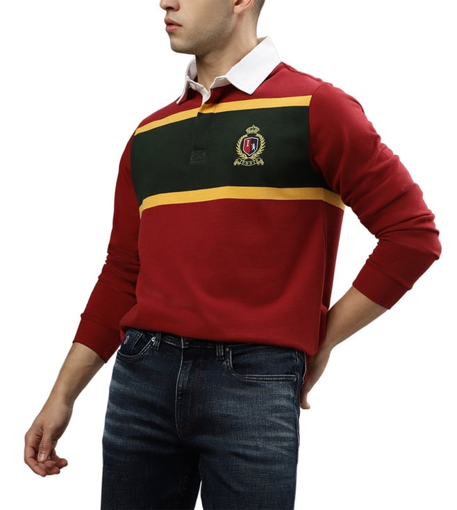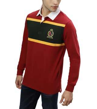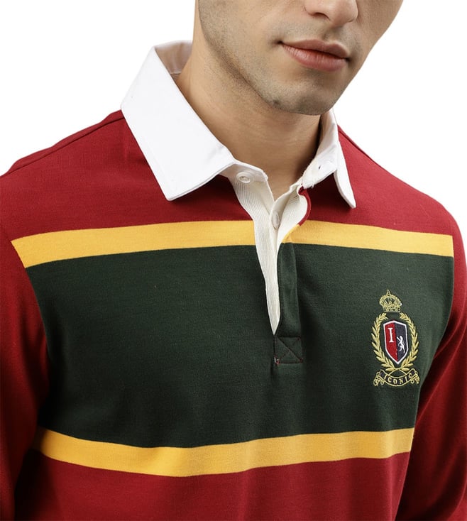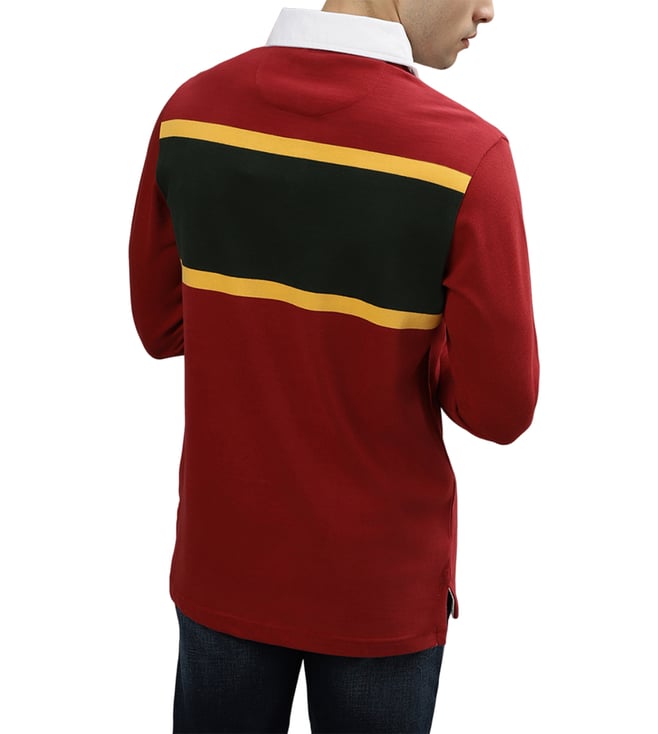 Iconic Red Colourblocked Regular Fit Polo T-Shirt