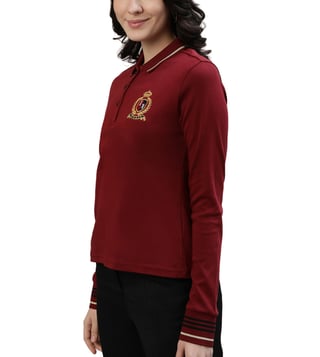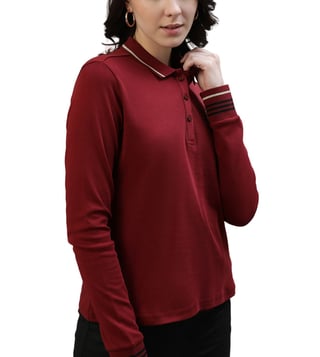 Elevate your wardrobe with this versatile polo t-shirt that effortlessly combines comfort and fashion. Crafted with chic sleeves and a comfortable fit, this rich-colored polo t-shirt surely glitters your styling.