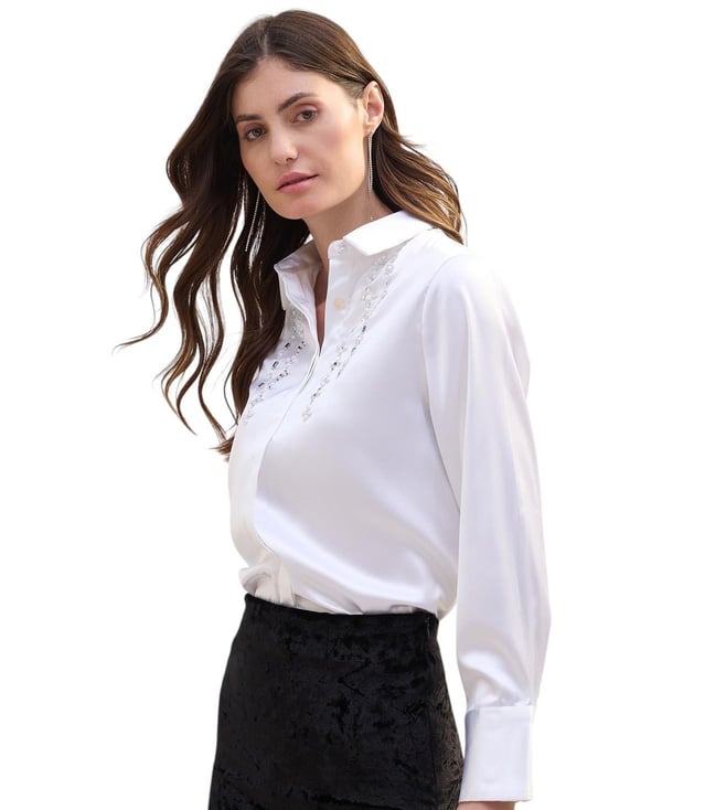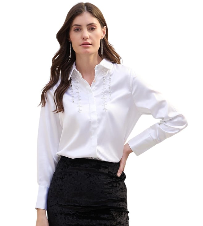 Iconic White Embellished Regular Fit Shirt