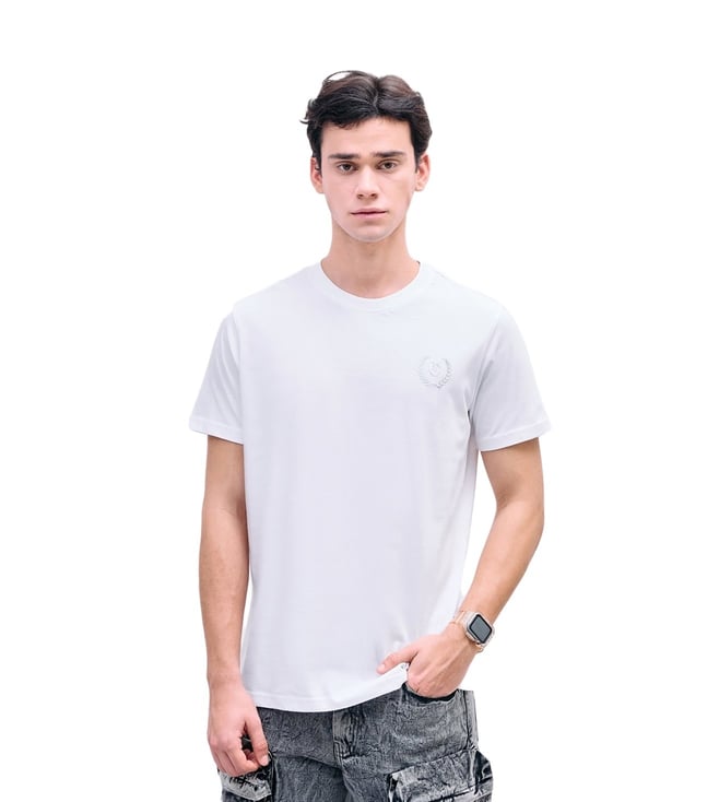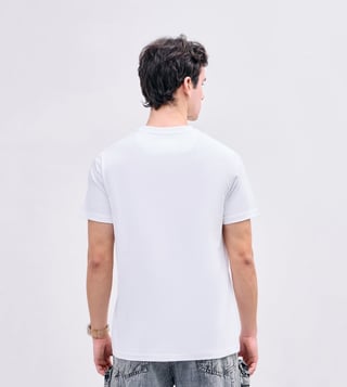 Experience timeless style with our classic white T-shirt, designed for the modern man. Crafted from 100% premium cotton, this regular-fit tee offers unparalleled comfort and breathability. Its solid pattern and short sleeves make it a versatile wardrobe staple, perfect for any occasion. The crew neck adds a touch of casual elegance, while the absence of closures ensures a seamless look. Whether paired with jeans or layered under a jacket, this T-shirt is your go-to for effortless sophistication.