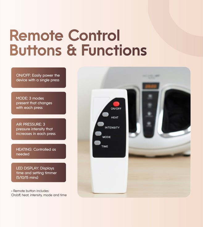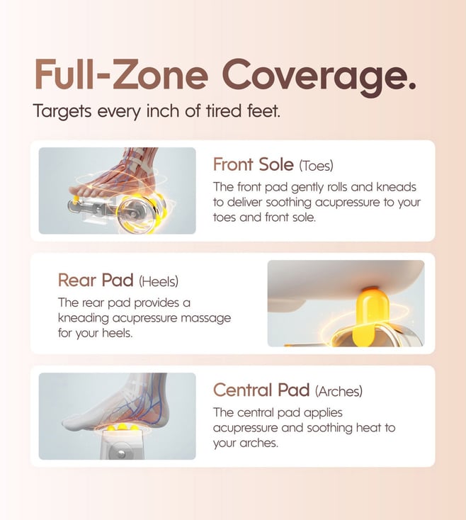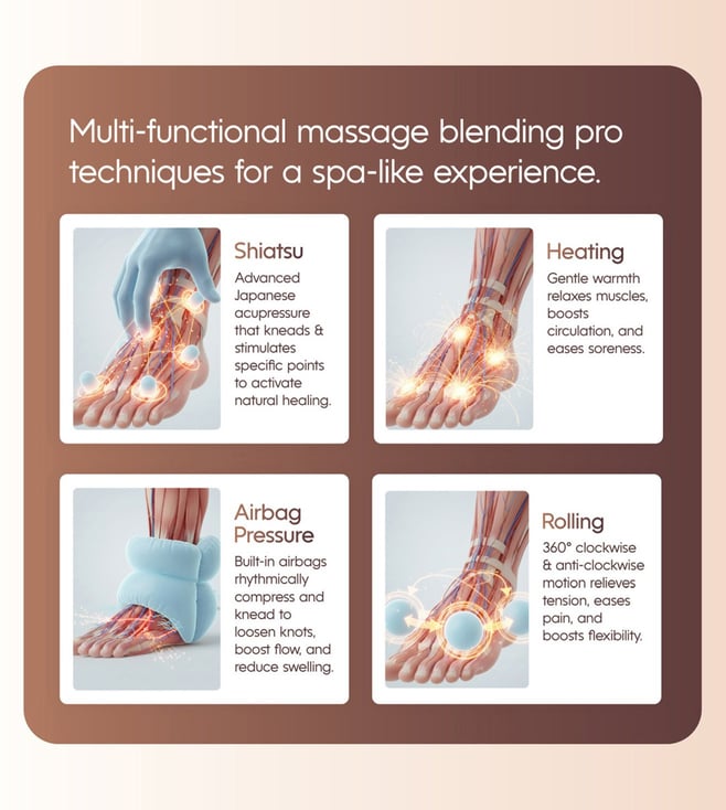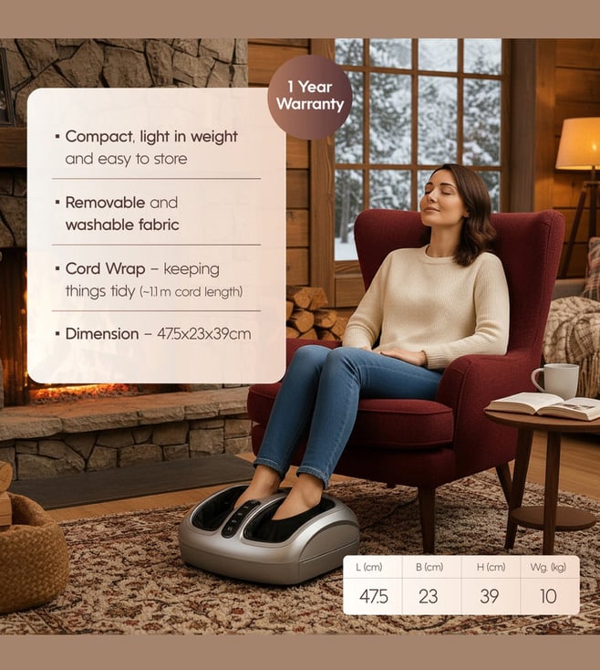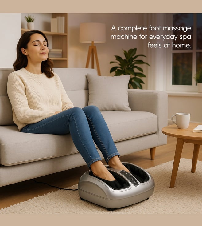 The aura foot massager is a relaxing and ergonomic electric foot massager designed to deliver a complete foot rejuvenation experience. With multiple massage modes including kneading, scraping and rolling, it targets reflex zones, pressure points and soles to melt away tiredness after long hours on your feet. The curved, compact design ensures maximum comfort and relaxation at home. Ideal for those seeking a spa like foot massage from the comfort of their personal space, this foot massage machine is your answer to daily stress relief and foot comfort.
