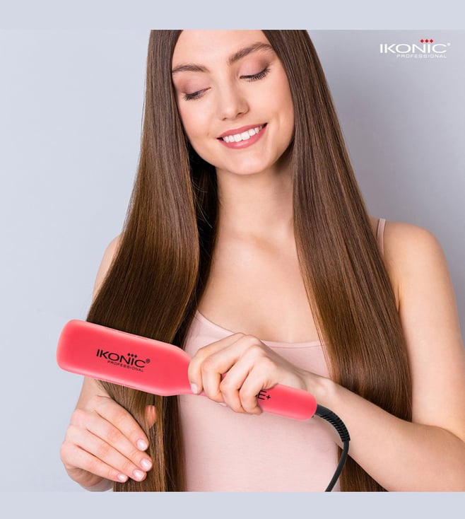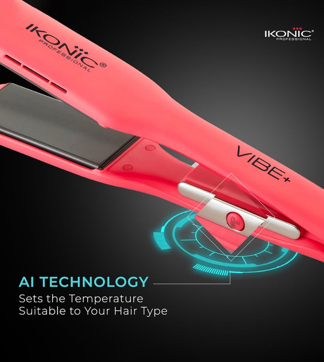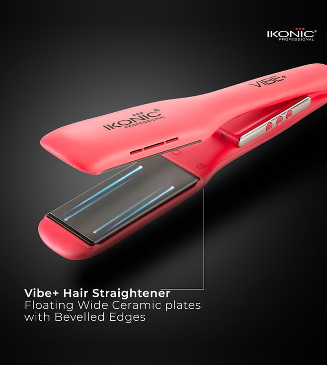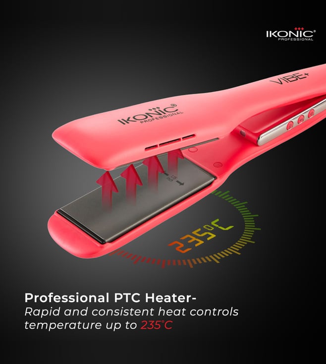 Introducing the this hair straightener, a 72w styling tool available in white, peach and teal. Designed with overheat protection, side lock switch and a professional swivel cord, it ensures safety and convenience. The LED temperature display with adjustable settings from 130 C to 235 C suits all hair types. Floating ceramic plates provide even heat, while the PTC heater and ionic technology reduce frizz, add shine and seal cuticles. With wide plates and advanced features, vibe plus delivers smooth, sleek styles with ease and professional results.
