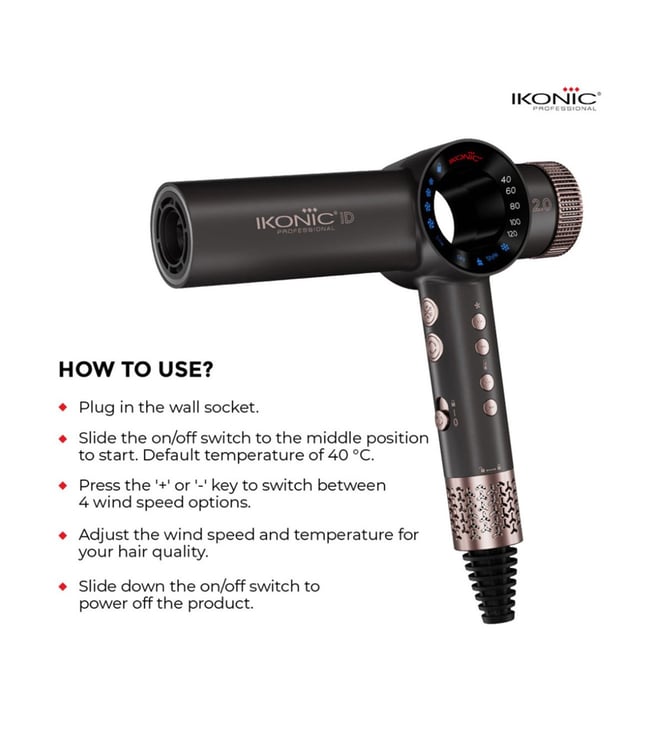 This 2.0 hair dryer is designed for modern styling needs. With a powerful 100,000 RPM BLDC motor and an Ion generator, it delivers ultra-fast drying and smooth, frizz-free results. The functional numeric display allows precision control, while smart self-cleaning tech ensures long-term hygiene. Comes with 2 magnetic nozzles and 1 diffuser for versatile styling. Lightweight, ergonomic and built for professionals, it redefines hair drying with style, speed and cutting-edge innovation.