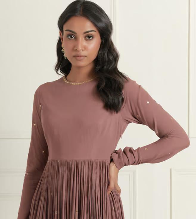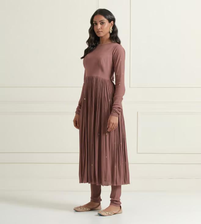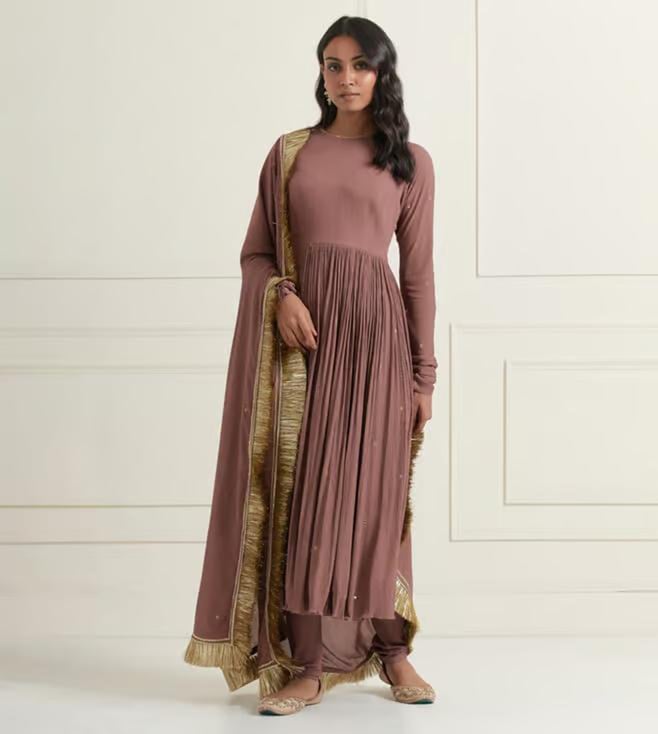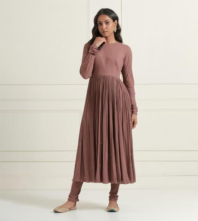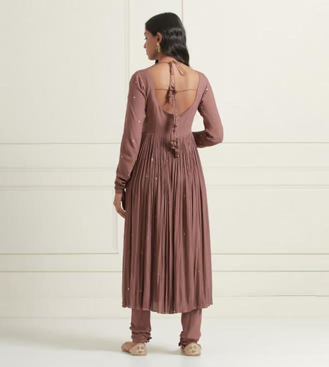 Ikshita Choudhary Moca Brown Naveli 2 Hand Embellished Wrinkle Cotton Gather Anarkali With Churidar
