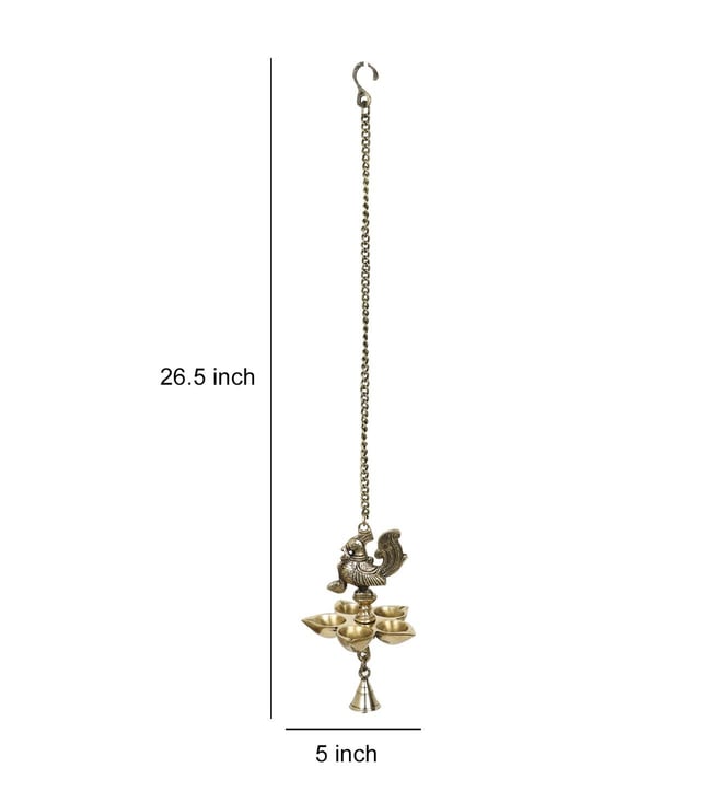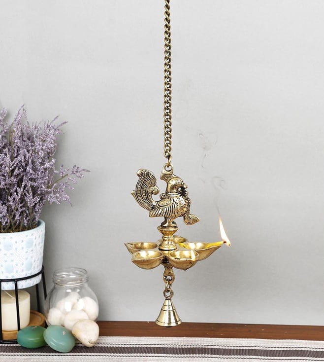 Fill your home with the rays of peace and joy by using this bird pancham diya with bell. It is crafted from brass which is considered to be a sacred metal and traditionally used in home decoration. It can also be a great gifting option on Diwali, Dhanteras and many more religious occasions. Disclaimer: All other items in the image are only for display purposes and will not be a part of the delivery content.