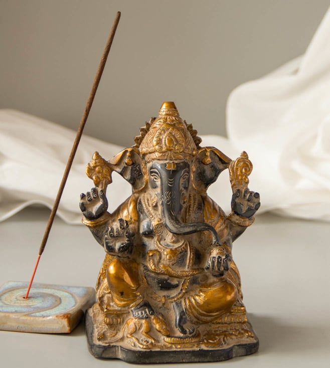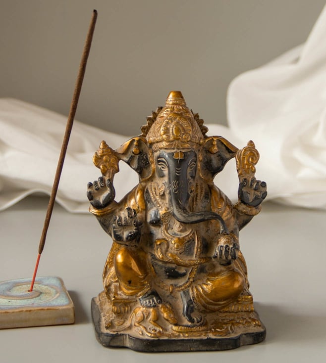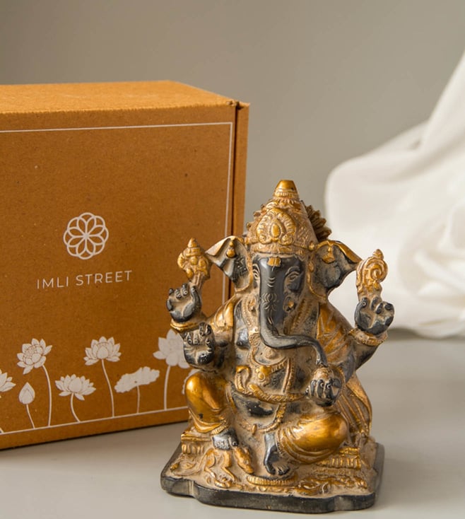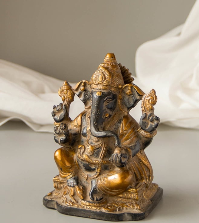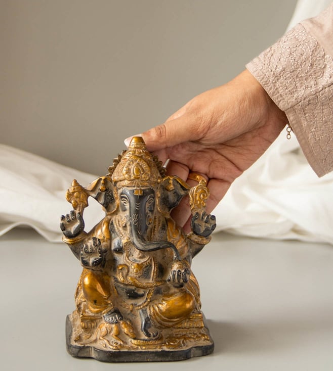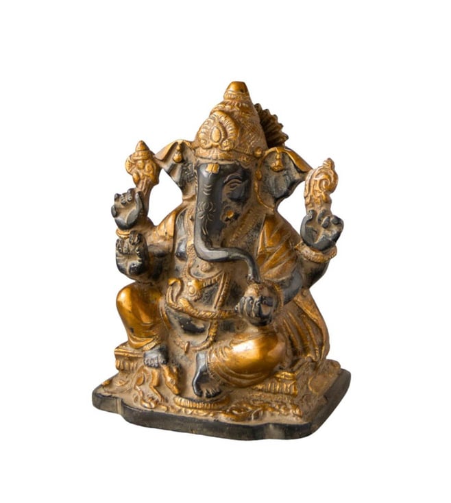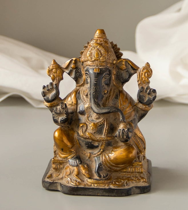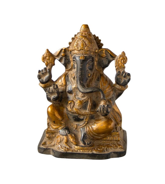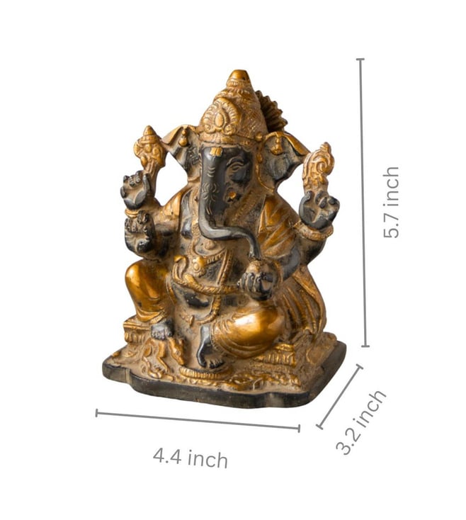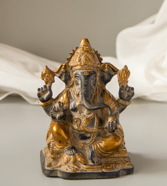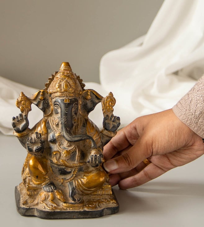 Ganesh Brass Idol - Gold & Black Patina Finish
