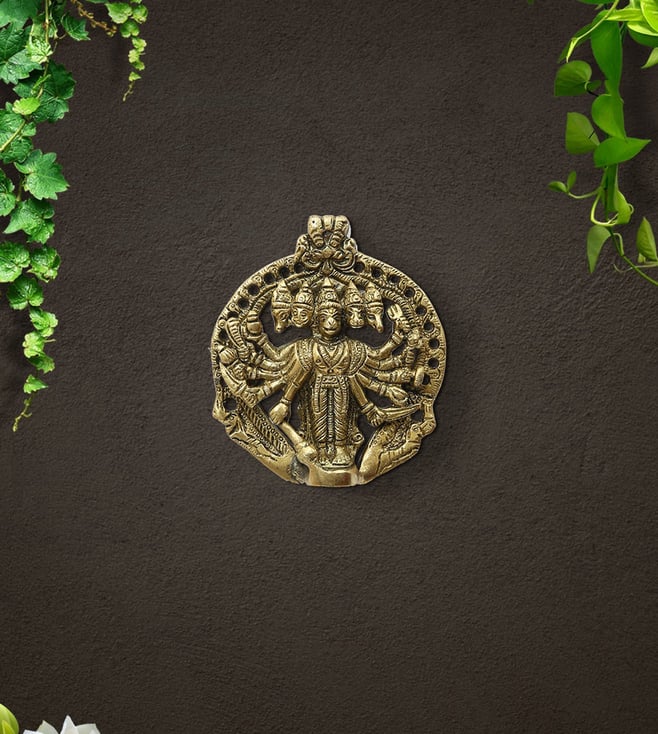 IMLI STREET Gold Panch Mukhi Hanuman Brass Wall Hanging Plate¿