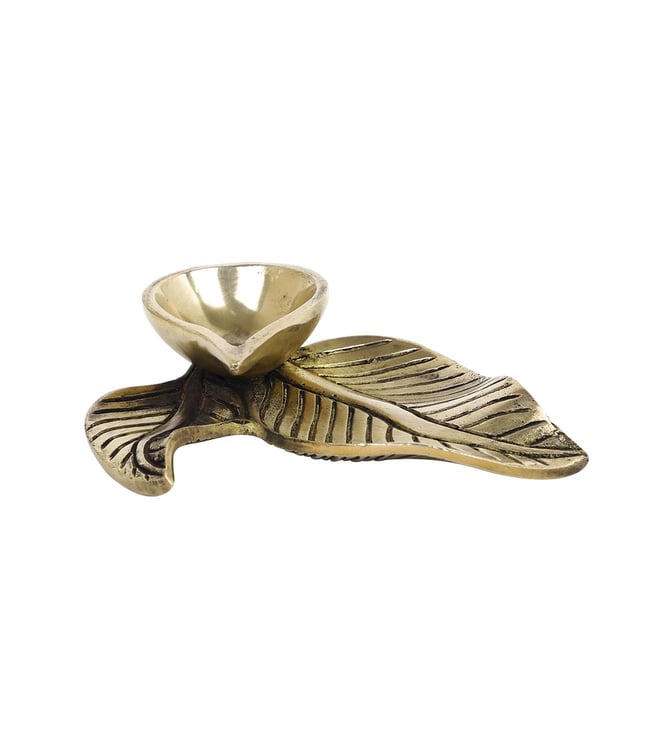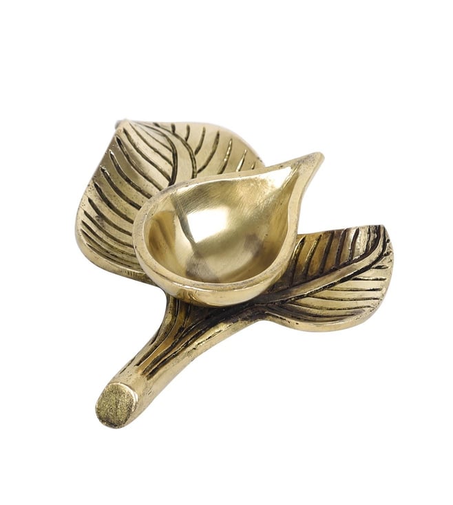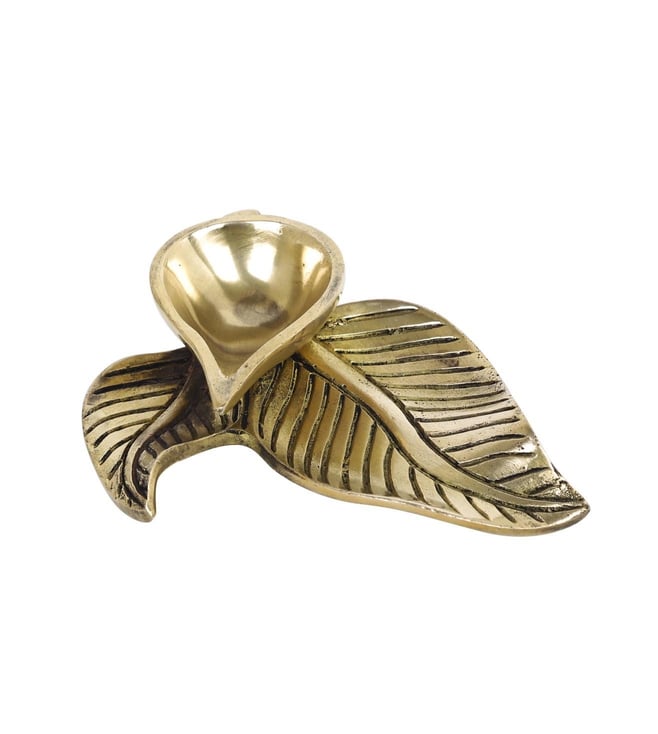 Let the festival of light fill each heart with hope and love by using this leaf diya. It is crafted from brass which is considered to be a sacred metal and traditionally used in home decoration. It can also be a great gifting option on Diwali, Dhanteras and many more religious occasions. Disclaimer: All other items in the image are only for display purposes and will not be a part of the delivery content.